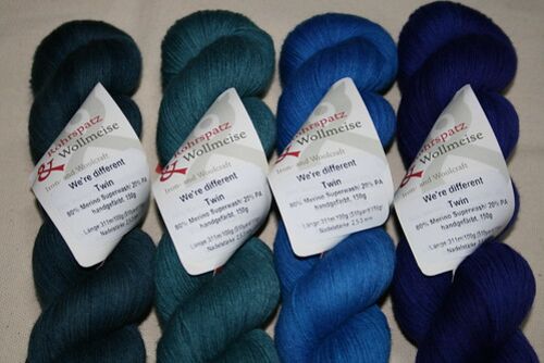 scarab Froot Loop2012-#05 *73KAL4/6足目です。 誰がこんな色を買ったんだ~!?ワタシだ~!コレは私の一番好きな糸。ドイツのWollmeise の糸Sockenwolle 80/20 Twin という糸です。なかなか色指定で買えないので 色おまかせの袋のぶんです。 We're differ…