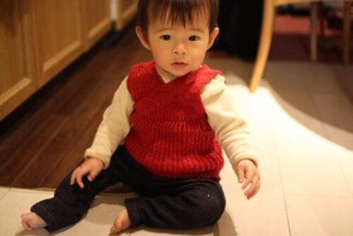 あれ~ 何故かすでに年末! まとめもできずに ダメダメな後半でした。できているものをUPします。 去年生まれた孫は もうこんなサイズになりまして 歩くようになりました。小寒いときにかぶりで着られる カシュクールベスト総ゴム編みのように見えますが 上…